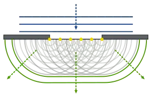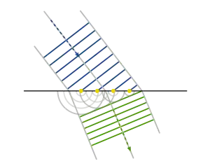 Fiecare punct de pe un front de undă poate fi considerat ca punct de plecare a unei unde elementare, care se propagă cu aceeași viteză și lungime de undă ca și unda inițială. Noul front de undă este creat prin însumarea tuturor acestor unde elementare.