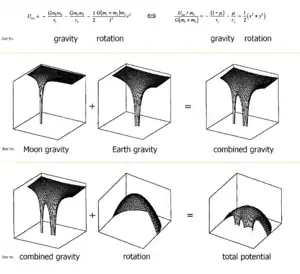 Se poate observa că poziția centrului de masă este nemodificată, conform legilor de conservare, în cazul momentului rezultant al forțelor gravitaționale (cazul prezentat este ideal).[1]
