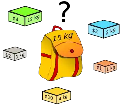 Aici, xi reprezintă numărul de obiecte din categoria i de inclus în rucsac. Informal, problema este de a maximiza suma valorilor elementelor din rucsac, astfel încât suma ponderilor să fie mai mică sau egală cu capacitatea rucsacului.