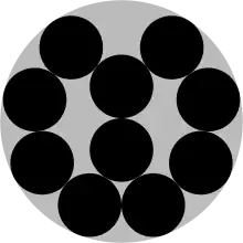 Omologul cercului din alte dimensiuni nu poate fi niciodată împachetat cu eficiență completă în dimensiuni mai mari decât 1 (într-un spațiu unidimensional analogul cercului este doar două puncte). Adică, va exista întotdeauna spațiu neocupat dacă se împachetează doar cercuri. Cel mai eficient mod de a împacheta cercuri, împachetarea hexagonală, are o eficiență de aproximativ 91 %.[8]