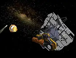 | Un observator spațial, numit după Johannes Kepler pe o orbită heliocentrică, orientată spre Pământ, având ca misiune să exploreze structura și diversitatea sistemelor exoplanetă, cu un accent deosebit pe detectarea planetelor de dimensiunea Pământului în orbită în jurul stelelor din afara sistemului nostru solar.[25] Primele sale descoperiri au fost anunțate în ianuarie 2010. Planificată inițial pentru 3 ani și jumătate, a fost funcțională timp de peste 9 ani și jumătate. Până la retragerea sa în octombrie 2018, Kepler a observat 530.506 stele și a detectat 2.662 de planete.[26] | |||||||||