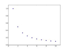 În matematică o progresie armonică[lower-alpha 1] este un șir ai cărui termeni sunt inversele termenilor unei progresii aritmetice.