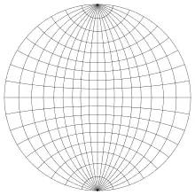 Rețeaua Wulff prezentată este proiecția stereografică a paralelelor și meridianelor de pe o emisferă a Pământului, centrată într-un punct de pe ecuator și poate reprezenta o emisferă, cum ar fi cea estică sau cea vestică.