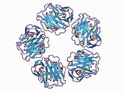 - Thompson D, Pepys MB, Wood SP (februarie 1999). „The physiological structure of human C-reactive protein and its complex with phosphocholine”. Structure. 7 (2): 169–77. doi:10.1016/S0969-2126(99)80023-9. PMID 10368284.