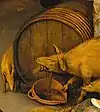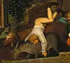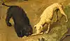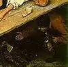 - Condiția tabloului face aproape imposibil să se poată vedea câinele.