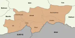 Șırnak este divizată în 7 districte (capitala districtului este subliniată):