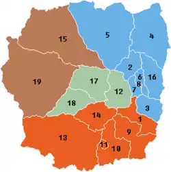 Provincia Antananarivo a fost împărțită în patru regiuni din Madagascar - Analamanga, Bongolava, Itasy și Vakinankaratra. Aceste patru regiuni au devenit diviziuni administrative de prim nivel atunci când provinciile au fost desființate în 2009. Acestea sunt subdivizate în 19 districte:
