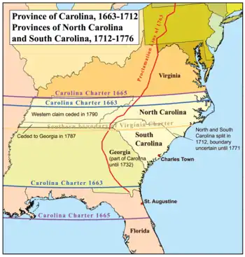 Dezidență accelerată a colonizatorilor împotriva celor ce guvernau provincia, a condus la numirea unui vice guvernator pentru administrarea jumătății nordice în anul 1691. Divizarea administrativă totală a Nordului și a Sudului a devenit definitivă în 1712, dar ambele colonii au rămas în mâinile acelorași proprietari.