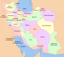 | Azerbaidjanul de Vest | Urmia | 37.437 km2 (14.455 mi2) | 3.080.576 | 78,8 locuitori pe kilometru pătrat (204 loc./mi2) | 14 | În timpul Dinastiei Pahlavi a fost cunoscut ca Rezaiyeh.[5] | ![]() |