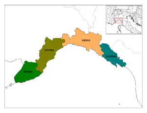 O provincie este compusă din mai multe comune, și de obicei mai multe provincii formează o regiune. Singura excepție este Valle d'Aosta care nu are provincii.