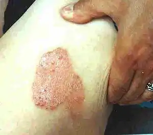 Psoriazis (din greacă ψωρίαση) este o boală de piele, care se manifestă prin descuamări (mătreață) însoțite de mâncărime și pete roșii de dimensiuni diferite pe piele. Regiunile afectate frecvent fiind zona articulațiilor genunchiului, cotului ca și pielea capului. Boala este o dermatoză netransmisbilă, cauza bolii este complexă, fiind implicați factori genetici predispozanți, reacții autoimune, alergii de natură diferită ca și o serie de cauze neclarificate.