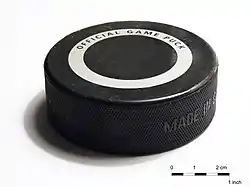 Un puc de hochei standard este de culoare neagră și are 2,54 cm grosime (1 inch), 7,62 cm în diametru (3 inci), și o greutate între 156 și 170 de grame (5,5–6 uncii).[1] Unele tipuri de pucuri, cum ar fi cele de antrenament, sunt mai grele sau mai ușoare decât cele standard, greutatea lor variind între 110 și 280 de grame (4–10 uncii). Înainte de joc, pucul este înghețat pentru a-i reduce proprietatea elastică și a preveni săltarea lui pe gheață.[1]