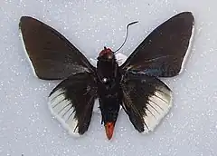 | Mascul de Pyrrhopyge sergius (lipsește antena stângă) | |