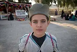 ![]() ![]() Piața tradițională Qashqai (sus) Băiat Qashqai purtând o pălărie tradițională (jos) | |
