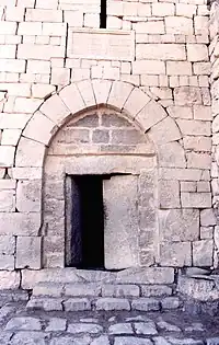 Deși sunt foarte grele, ambele cântărind câte o tonă, uși principale de piatră pot fi deschise cu ușurință datorită uleiului de palmier. Alegerea neobișnuită a pietrei pentru confecționarea ușilor poate fi explicată prin faptul că nu exista o sursă apropiată de lemn, în afară de lemnul de palmier, care este foarte moale și nepotrivit pentru construcție.