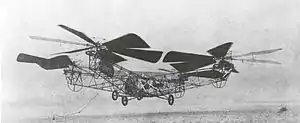 - Etienne Oehmichen a experimentat modelele rotorcraft în anii 1920. Printre cele șase proiecte pe care le-a încercat, elicopterul său nr.2 avea patru rotoare și opt elice, toate conduse de un singur motor. Unghiul acestor lame ar putea fi modificat prin deformare. Cinci dintre elice, care se roteau în plan orizontal au stabilizat mașina lateral. Un alt elice a fost montat la nas pentru direcție. Perechea de elice care a rămas a funcționat ca propulsie înainte. Aeronava a prezentat un grad considerabil de stabilitate și o creștere a preciziei de control pentru timpul său și a efectuat peste o mie de zboruri de testare în timpul anilor 1920. Pâna în 1923 a reușit să rămâna în aer pe câteva minute, iar la 14 aprilie 1924 a stabilit prima înregistrare FAI pentru elicoptere de 360 m (397 m). A demonstrat abilitatea de a finaliza un curs circular [12], iar mai târziu a finalizat primul zbor cu circuit închis de 1 kilometru (0.62 mi) de către o navă cu rotor.