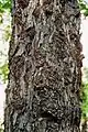 Scoarța formează un ritidom cenușiu- închis , cu plăci neregulate și margini răsfrânte, friabile.