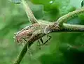 Frunzele sunt penat-fidate, ovate sau obovate, cu vârful rotund și baza cuneată, de 10-20 cm. lungime și 7-13cm. lățime, cu 8-12 perechi de lobi mucronați la vârf ; lobii atingând lățimea maximă în jumătatea laminei și descrescând către vârf. Sunt verzi închis, coriacee, glabre sau fin pubescente pe față și dens pubescente sau tomentoase pe dos ; pețiolul frunzei de 1-1,5 cm. tomentos.