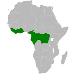 - P. n. nitens, subspecia nominalizată, care apare în Guineea, Sierra Leone, Coasta de Fildeș, Ghana, Togo, Nigeria, Gabon, Congo și Angola