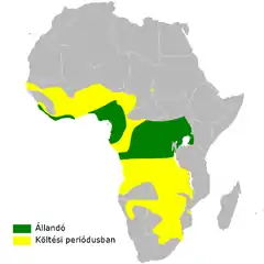 Este o pasăre migratoare în cea mai mare parte a arealului său. În sudul Africii este un vizitator de vară, cuibărind între iulie și martie, cea mai mare parte a populației migrând în Africa ecuatorială, deși câteva rămân tot anul. În unele părți ale arealului său, de exemplu, în sud-estul Nigeriei până în Gabon, pare să fie rezidentă, dar este în mare parte un vizitator de reproducere în sezonul ploios în zona nordică.[2]