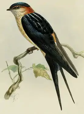 Rândunica roșcată (Cecropis daurica, supspecia rufula) după John Gould