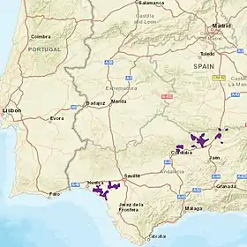 În Portugalia, Centro Nacional de Reprodução do Lince-Ibérico („Centrul Național de Reproducere a Râului Iberic”) a fondat un centru de reproducere lângă Silves, Portugalia,[72][73] iar de atunci a crescut 122 de indivizi cu toții crescuți la centrul de reproducere, dintre care 89 au supraviețuit. 73 dintre ei au fost introduși în sălbăticie. Introducerea a avut loc în Mértola(en)[traduceți] și Serpa din Valea Guadiana.[74] Conform datelor din 2020, există în jur de 140 de indivizi în sălbăticie în Portugalia, răspândiți pe parcursul unei suprafețe de 50.000 de hectare, iar 50 dintre acești indivizi sunt pui.[75]