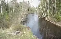 According to Warren Upham, he records the Ojibwe name of the river being Gichigami-ziibi (Great-lake River). He also records: