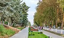 ![]() Vedere îndepărtată a unui cartier din oraș. | |