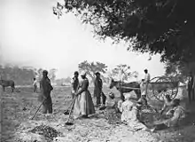 La începutul războiului, unii comandanți unioniști credeau că datoria lor este să returneze sclavii evadați stăpânilor lor. Până în 1862, când a devenit clar că războiul avea să fie unul de durată, chestiunea tratării sclaviei a devenit mai generală. Economia Sudului și efortul militar sudist depindeau de munca sclavilor. A început să devină nerezonabil să se protejeze sclavia și în același timp să se încerce blocarea comerțului Confederației și distrugerea producției. După cum a spus un congresman, sclavii „...nu pot fi neutri. Ca lucrători, dacă nu ca soldați, ei vor fi fie aliații rebelilor, fie ai Uniunii.”[97] Același congresman—și alți colegi republicani radicali ai săi—l-au presat pe Lincoln să emancipeze rapid sclavii, în timp ce republicanii moderați au ajuns să accepte emanciparea și colonizarea treptată, cu despăgubire.[98] Copperheads, statele de graniță și democrații unioniști se opuneau emancipării, deși statele de graniță și democrații au ajuns să o accepte în cele din urmă ca parte din războiul total necesar pentru salvarea Uniunii.