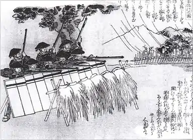 Chinezii au folosit foarte mult săgețile propulsate ca și rachete în special în timpul asediului de la Pyongyang din ianuarie 1593. În timpul asediilor, chinezii au mai folosit mult scuturile din ratan și a desfășurat pasivele de fier (scuturi mari). Aceste tipuri de scuturi aveau reputația de a putea opri gloanțele de muschete.