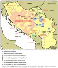 După capitularea Italiei din 1943, toate teritoriile controlate de această au trecut sub controlul german sau ustaș. Acese teritorii au inclus Kosovo, Albania, Muntenegru și cea mai mare parte a Dalmației. (Toate aceste schimbări teritoriale, ca și disoluția Iugoslaviei înseși nu au fost recunoscute de niciunul dintre Aliați, nu sunt recunscute ca având o bază legală de niciunul dintre statele din ziua de azi sau de ONU).