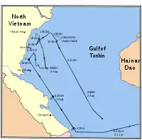 La 2 august 1964, distrugătorul american USS Maddox, aflat într-o misiune de recunoaștere de-a lungul coastei de nord a Vietnamului, a fost atacat și avariat de mai multe torpiloare care îl urmăreau în Golful Tonkin[38] Un al doilea atac a fost raportat două zile mai târziu asupra distrugătorului USS Turner Joy în aceeași zonă. Circumstanțele atacului erau neclare. Reacționând la presupusul atac, la 5 august 1964, Congresul SUA a adoptat așa-numita Rezoluție asupra Golfului Tonkin, semnată de președintele Johnson, care i-a dat putere președintelui să ordone desfășurarea operațiunilor militare în Asia de Sud, fără a declara război[39]. În urma rezoluției, Johnson a ordonat imediat bombardarea facilităților industriale și militare din Vietnamul de Nord. Un document declasificat din 2005 a arătat că nu a existat nici un atac la 4 august[40]. Ea a fost planificată cu mult timp înaintea "incidentului din Golful Tonkin", scrie Louise Gerdes, "este un exemplu des citat despre modul în care Johnson a indus în eroare poporul american pentru a obține sprijinul său pentru politica sa externă în Vietnam."[41] Cu toate acestea, George C. Hering susține, că McNamara și Pentagonul "nu au mințit cu bună știință cu privire la presupusele atacuri, dar au fost, în mod evident, într-o stare de spirit de răzbunare și par să fi selectat din probele aflate la dispoziția lor acele părți care confirmau ceea ce au vrut să creadă."[42]
