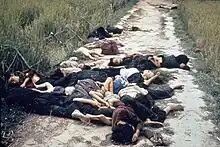 Masacrul de la Mỹ Lai a avut loc la 16 martie 1968, când un pluton de militarii americani, în satul Mỹ Lai, a măcelărit 500 civili, în mare majoritate bebeluși, copii, femei și bătrâni. În urma acestui masacru, au fost arestați nouă soldați din forțele speciale[47], suspectându-se că acțiunea fost opera unui agent dublu[48]. Această faptă a provocat consternare națională și internațională. Doar comandantul plutonului,lt. William Calley, a fost găsit vinovat, primind închisoare pe viață, dar a fost închis doar trei ani și jumătate.