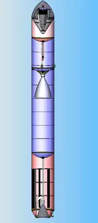 | Motor | Rachetă cu combustibil lichid în trei trepte