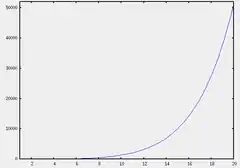log n, adică numărul de cifre al numărului de factorizat; pe ordonată, ordinul de mărime al duratei de factorizare). Se observă că această complexitate este exponenţială, crescând foarte mult pentru numere mariFactorizarea întregilor prin metodele comune ajută la găsirea soluțiilor în timp util doar pentru numere mici. Pentru numere mari, algoritmii de factorizare, cu complexitate exponențială, dau soluția după foarte mult timp. Cea mai rapidă metodă de factorizare a întregilor, algoritmul general al ciurului câmpurilor de numere, are o complexitate de [12][13] Aici, c este un număr ce ia valori în jur de 1,9 pentru numere de tipul lui n, adică numere cu doi factori primi. Cel mai mare număr factorizat vreodată prin acest algoritm, rulat în anul 2005, de către specialiști de la Agenția Federală Germană pentru Securitatea Tehnologiei Informației, are 200 de cifre zecimale, iar reprezentarea binară a factorilor primi obținuți ocupă 663 de biți.[14][15] Cheile de criptare RSA cele mai sigure au lungimi de peste 1024 de biți.