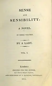 ![]() Paginǎ a primei ediții a cărții Rațiune și Simțire, 1811 | |||||||