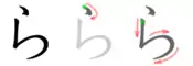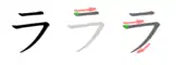 | Ordinea corectă de scriere pentru ラ |