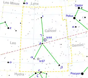 | Cea mai strălucitoare | β Cnc (Altarf) (3,53m) |