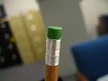 Radierele sunt adesea atașate la capătul opus părții ascuțite a creioanelor. Radierele de acest tip sunt de obicei de culoare roz, roșie sau verde (adesea asortată cu creionul, din motive stilistice) și au o textură netedă și cauciucată. De asemenea, în compoziția lor se amestecă piatră ponce pulverizată pentru a le conferi o structură mai rigidă. Aceste radiere sunt de obicei bune, dar folosite prea mult în același loc pot strica hârtia, iar reziduurile rămase trebuie curățate.