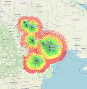 Acoperire aproximativă a semnalului Radio Chișinău.