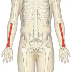 ![]() Radiusul (roșu) în cadrul unui schelet uman | |