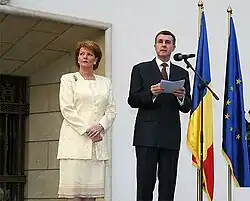 Principele Radu împreună cu Principesa Margareta la lansarea candidaturii la președinție (10 aprilie 2009).