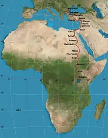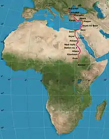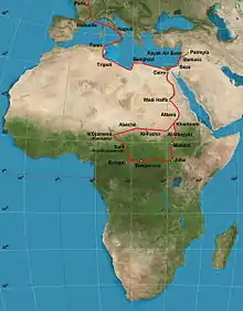 Traseul raidului a fost Paris – Marsilia – Napoli – Tunis – Tripoli – Bengazi – Cairo – Wadi Halfa – Khartum – Al Fashir – Abéché – Fort-Lamy – Fort-Archambault – Bangui – Bangassou – Juba – Malakal – Atbara – Cairo – Gaza – baza aeriană Rayak (en) – Damasc – Palmyra – Gaza – Cairo.[52][53][54]