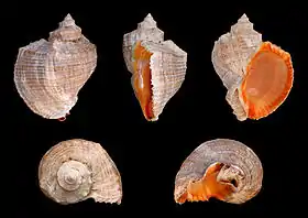 Rapana este un gastropod de talie mare, cu cochilia globuloasă și groasă, spiralată, compusă din 7-8 spire separate de suturi adânci. Marginea de sus a fiecărei spire este acoperită cu tuberculi cornoși. Atinge grosimea de 190/160mm. Canalul sifonal este relativ scurt și larg, cu o crestatură adâncă. Suprafața este diferit ornamentată și prezintă un șir de mameloane dispuse în spirală. De asemenea pe suprafața cochiliei se observă și ușoare coaste longitudinale. Apertura este foarte largă, de formă ovală, strălucitoare în interior, de culoare portocalie-roșcată. Culoarea cochiliei este de la galben pal la roșiatic-maroniu adesea cu benzi brune sau striuri colorate mai intens. Interiorul aperturii este portocaliu aprins, galben sau brun.