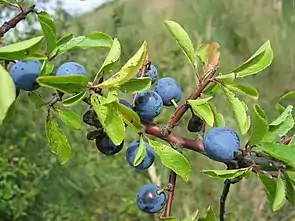 Porubar (Prunus spinosa) - foto: detaliu frunze şi fructe de porumbar