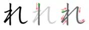 れ în hiragana sau レ în katakana, (romanizat ca re)[2] este un kana în limba japoneză care reprezintă o moră. Caracterul hiragana este scris cu două linii, iar caracterul katakana cu o singură linie. Kana れ și レ reprezintă sunetul [ɽe] (