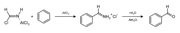 Reacția poate fi simplificată prin înlocuirea amestecului HCN/AlCl3 cu cianură de zinc.[2] Deși este foarte toxică, Zn(CN)2 este un compus solid, ceea ce o face mai ușor de manipulat decât acidul cianhidric gazos.[3] Zn(CN)2 reacționează cu acidul clorhidric formând reactantul, iar Zn(CN)2 este și catalizator acid Lewis in-situ. Utilizând Zn(CN)2 se poate obține mesitaldehidă din mesitilen.[4]