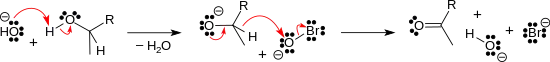 Dacă este prezent un alcool secundar, acesta va fi oxidat la cetonă de către hipobromit: