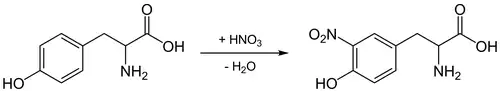 Reacția xantoproteică este o reacție chimică prin intermediul căreia se poate determina prezența și cantitatea de proteină (dar doar proteinele care conțin aminoacizi aromatici) dintr-o anumită soluție.[1] Reacția se realizează cu ajutorul acidului azotic concentrat. Reacția este pozitivă și pentru aminoacizii care conțin grupe aromatice, cu precădere pentru tirozină. Se consideră că testul este pozitiv dacă apare o colorație specifică, galbenă, datorată produșilor reacției de nitrare a aminoacizilor aromatici (tirozina, triptofanul, fenilalanina).[2]