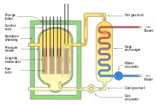 Reactorul cu apă grea sub presiune - PHWR Ca și la reactorul PWR, la acest reactor agentul de răcire (apa grea) circulă prin generatori de abur unde energia termică preluată din reacția de fisiune este trasferată apei ordinare care fierbe producând abur. Reactorul PHWR are o structură particulară constând din vasul moderatorului (CALANDRIA) menținut la presiune și temperatură scăzută, care este străbătut de tuburi ce conțin combustibilul și prin care circulă apa grea de răcire la presiune ridicată. Această structură cu tuburi conținând combustibilul ce pot fi accesate individual permite schimbarea combustibilului fără oprirea reactorului. Această caracteristică a reactorului îi crește disponibilitatea dar și complexitatea operării.Reactorul răcit cu gaz - GCR reactorii răciți cu gaz mai sunt folosiți doar în Marea Britanie. Există două tipuri ale acestui reactor: Magnox (cu uraniu natural) și AGR (cu uraniu îmbogățit). Ambele folosesc bioxidul de carbon ca agent de răcire și grafitul ca moderator. Având o structură similară cu CANDU ele pot fi realimentate cu combustibil fără a fi oprite.